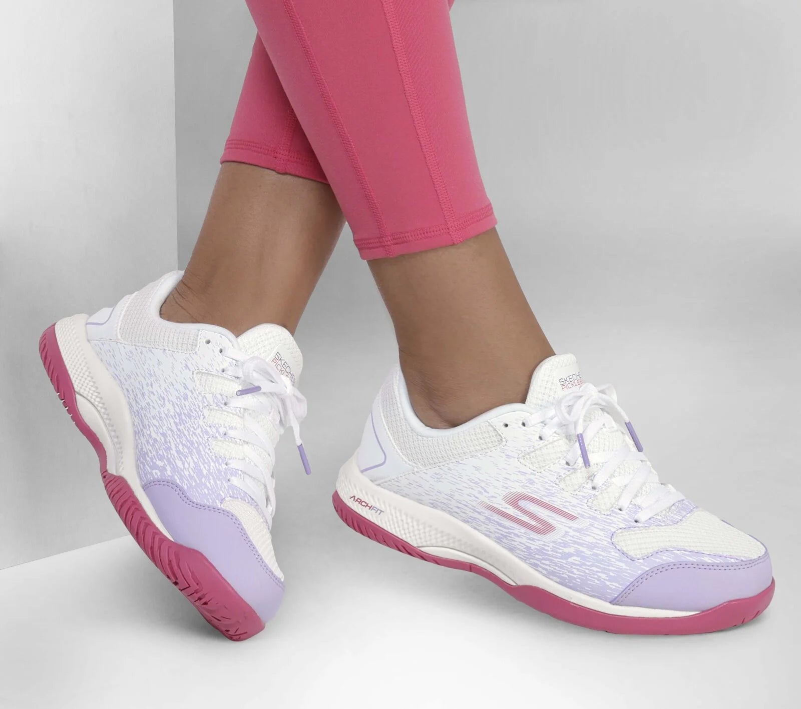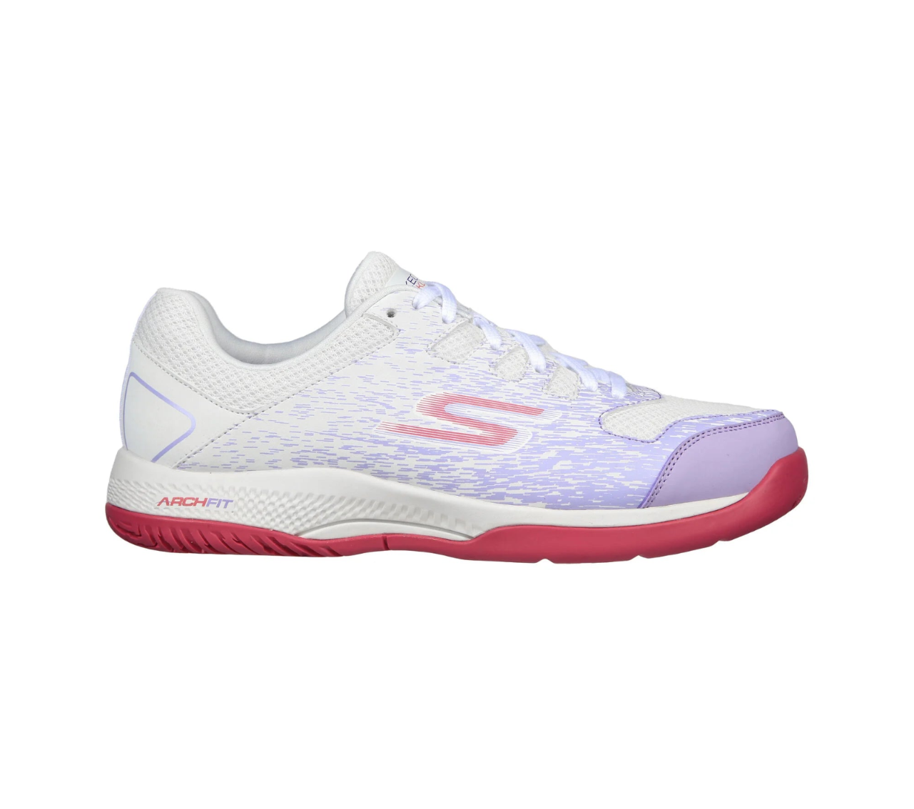 Make your move in confidence and supportive comfort with Skechers Relaxed Fit®: Viper Court - Pickleball. This performance court lace-up features a mesh and printed synthetic upper with a removable Arch Fit® insole, lightweight ULTRA FLIGHT® cushioning, and a Goodyear® Performance Outsole.