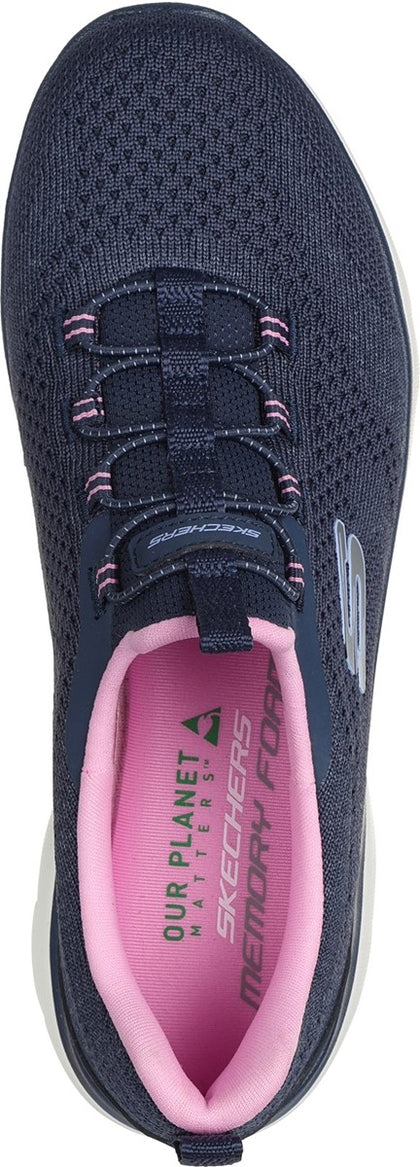 Athletic style and flexible comfort combine in Skechers Summits - New Nature. Designed with recycled materials, this easy-wearing style features an engineered knit upper with stretch laces and a cushioned Skechers Memory Foam™ comfort insole. Our Planet Matters®: Good for your feet. Good for the world.®